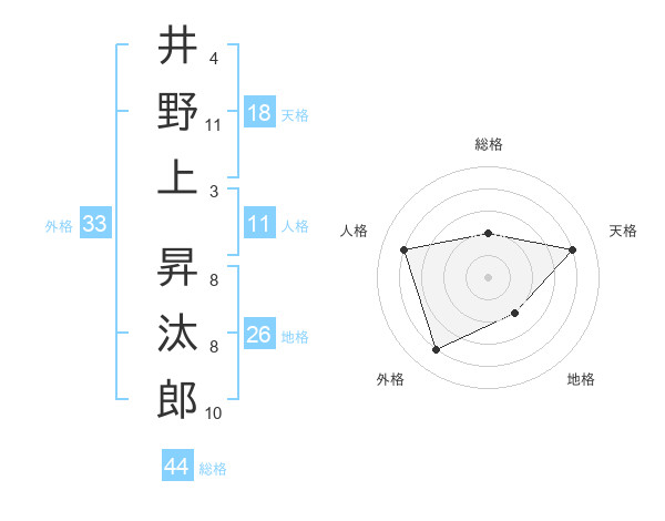 井野上 昇汰郎さんの総格は44画の2点!