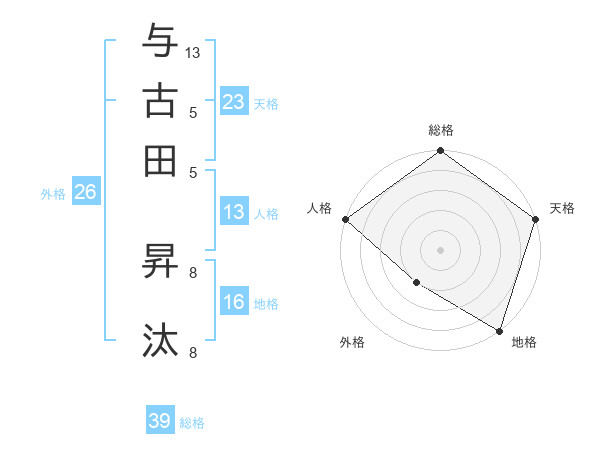 与古田 昇汰さんの天格は23画の5点!