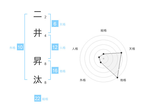 二井 昇汰さんを姓名の画数から五運を鑑定