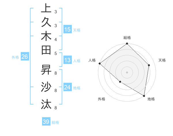 上久木田 昇沙汰さんの総格は39画の5点!