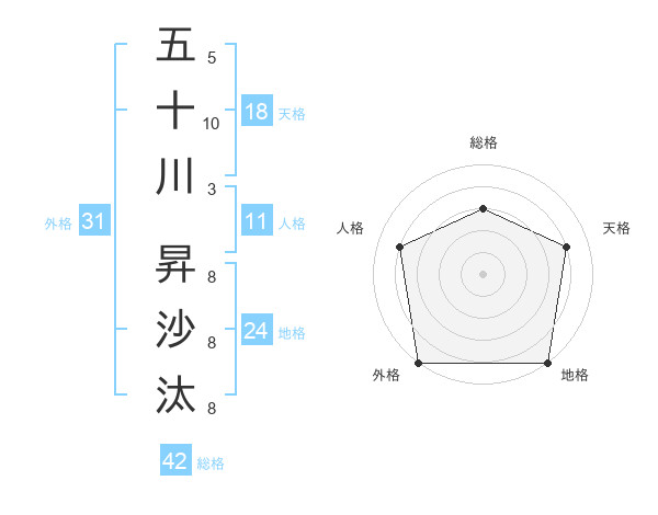 五十川 昇沙汰さんの総格は42画の3点!