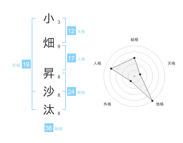 小畑 昇沙汰さんを姓名の画数から五運を鑑定
