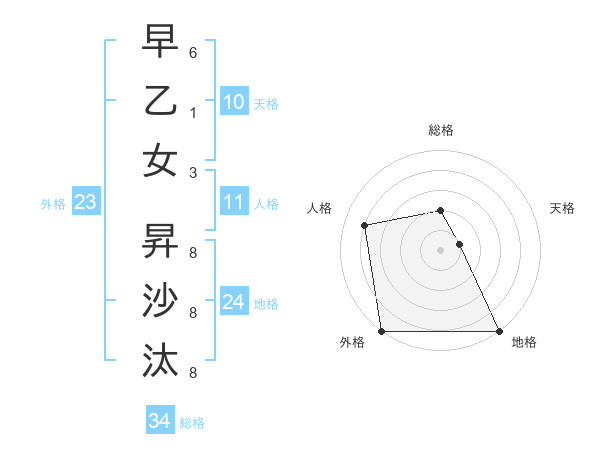 早乙女 昇沙汰さんを姓名の画数から五運を鑑定