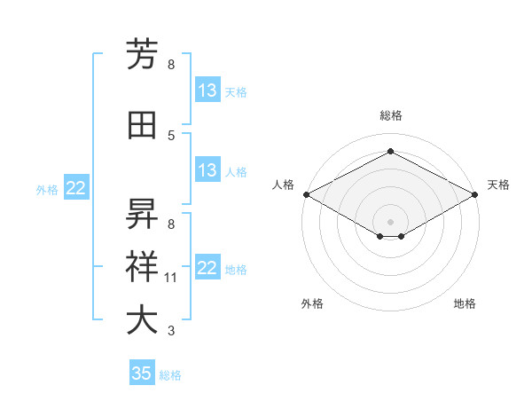 芳田 昇祥大さんの人格は13画の5点!