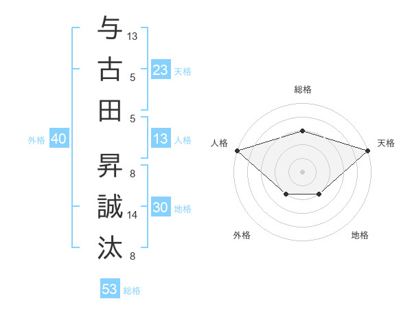与古田 昇誠汰さんの天格は23画の5点!