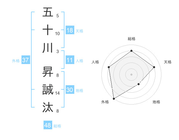 五十川 昇誠汰さんを姓名の画数から五運を鑑定
