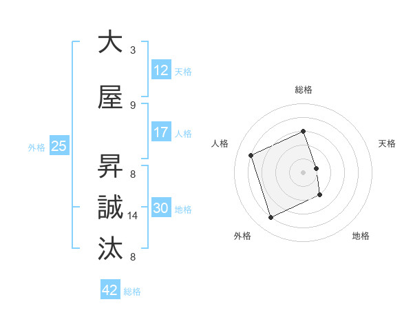 大屋 昇誠汰さんを姓名の画数から五運を鑑定