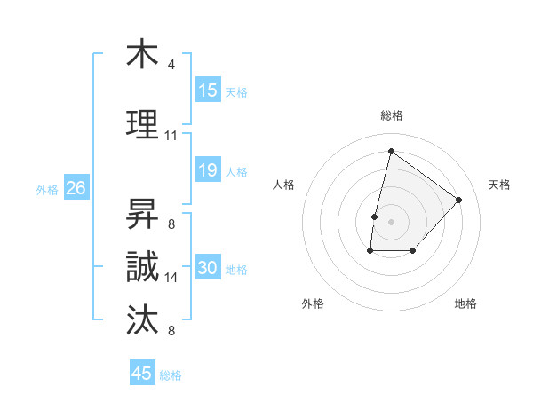 木理 昇誠汰さんの天格は15画の4点!