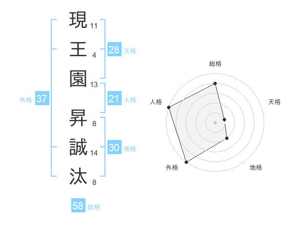 現王園 昇誠汰さんの外格は37画の5点!