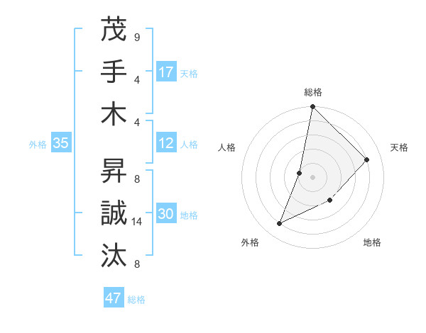 茂手木 昇誠汰さんの総格は47画の5点!