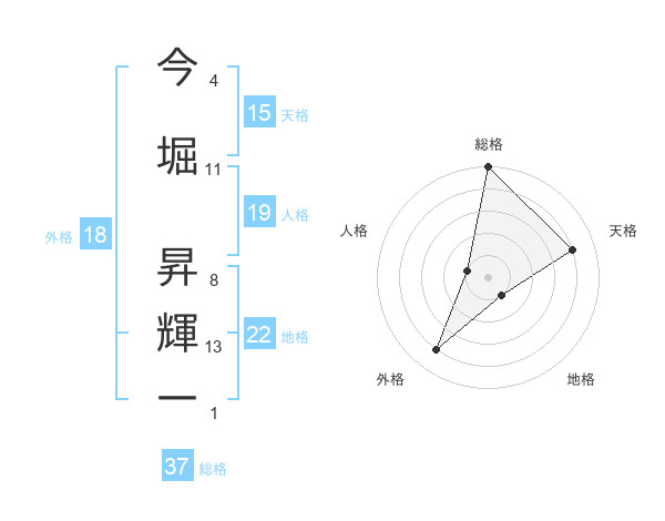 今堀 昇輝一さんの総格は37画の5点!