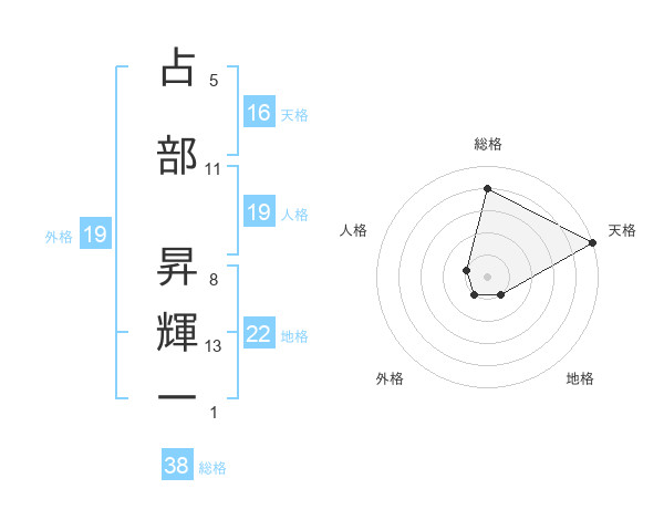 占部 昇輝一さんの天格は16画の5点!