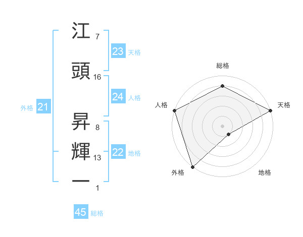 江頭 昇輝一さんを姓名の画数から五運を鑑定