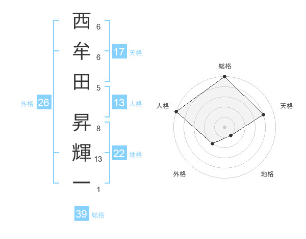 西牟田 昇輝一さんを姓名の画数から五運を鑑定