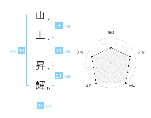 山上 昇輝さんの総格は27画の3点!