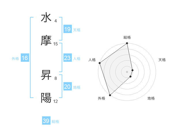 水摩 昇陽さんを姓名の画数から五運を鑑定