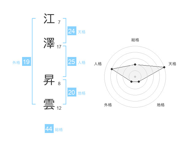 江澤 昇雲さんを姓名の画数から五運を鑑定