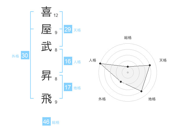 喜屋武 昇飛さんの外格は30画の2点!
