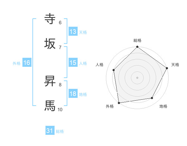 寺坂 昇馬さんの総格は31画の5点!