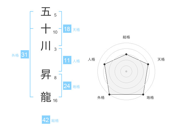 五十川 昇龍さんを姓名の画数から五運を鑑定