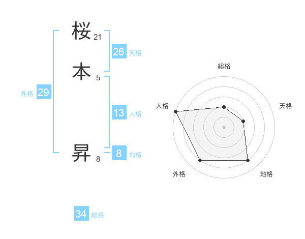 桜本 昇さんの総格は34画の2点!
