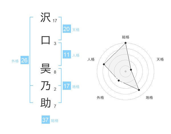 沢口 昊乃助さんの総格は37画の5点!