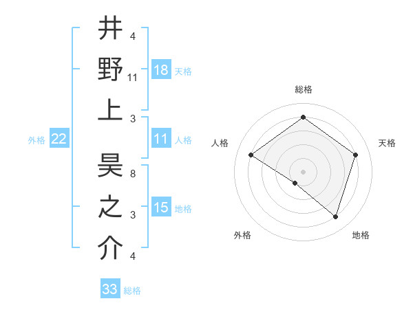 井野上 昊之介さんを姓名の画数から五運を鑑定