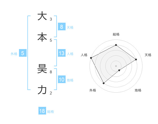 大本 昊力さんの総格は18画の4点!