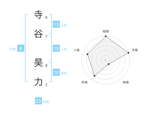 寺谷 昊力さんの総格は23画の5点!