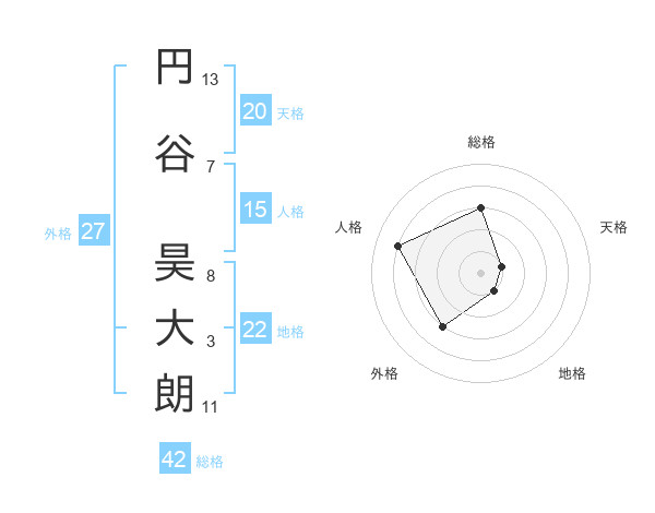 円谷 昊大朗さんを姓名の画数から五運を鑑定