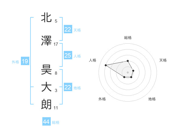 北澤 昊大朗さんを姓名の画数から五運を鑑定