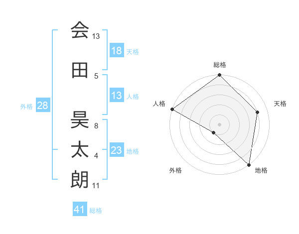 会田 昊太朗さんの総格は41画の5点!