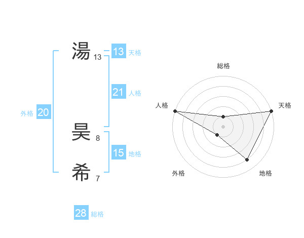 湯 昊希さんの天格は13画の5点!