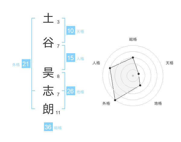 土谷 昊志朗さんの総格は36画の3点!
