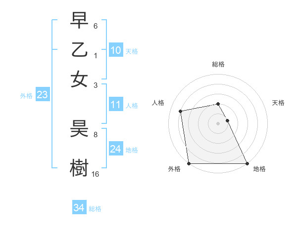 早乙女 昊樹さんを姓名の画数から五運を鑑定