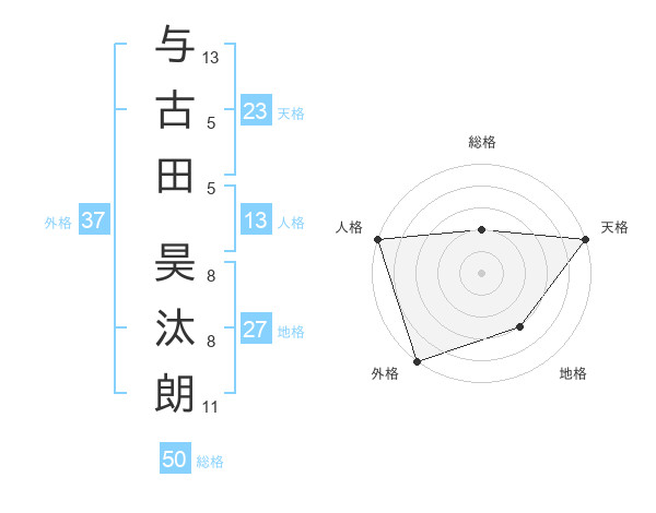 与古田 昊汰朗さんの天格は23画の5点!