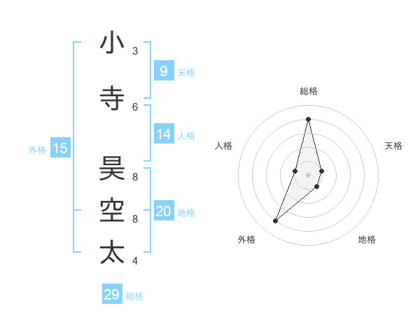 小寺 昊空太さんを姓名の画数から五運を鑑定
