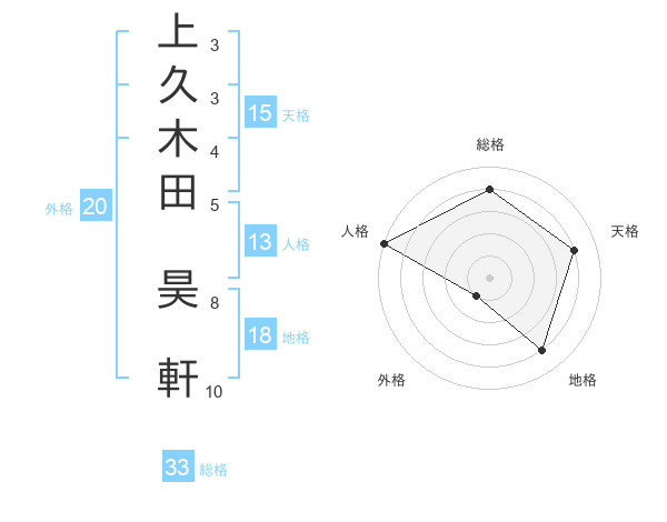 上久木田 昊軒さんを姓名の画数から五運を鑑定