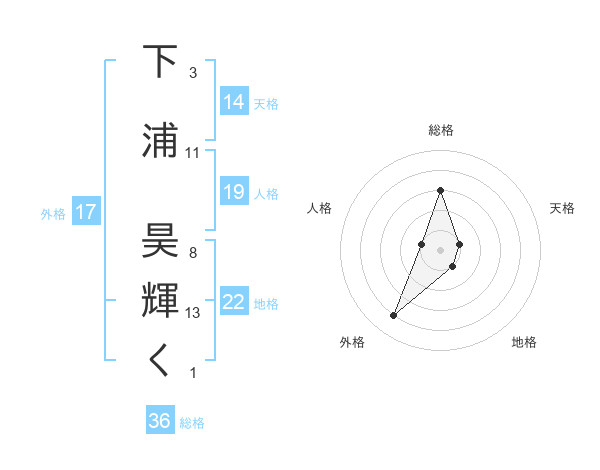 下浦 昊輝くさんの地格は22画の1点!