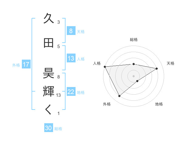 久田 昊輝くさんを姓名の画数から五運を鑑定