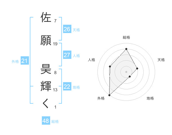 佐願 昊輝くさんを姓名の画数から五運を鑑定