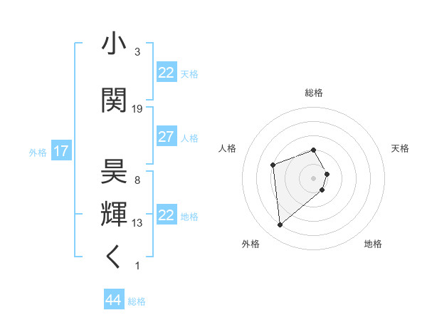 小関 昊輝くさんを姓名の画数から五運を鑑定