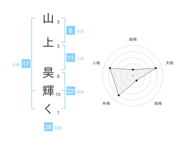 山上 昊輝くさんを姓名の画数から五運を鑑定