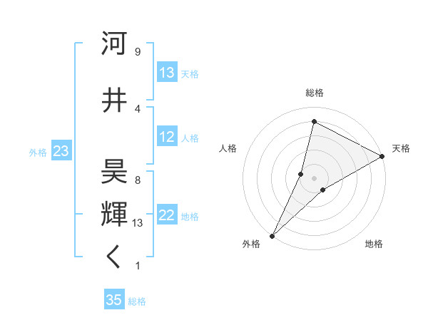 河井 昊輝くさんを姓名の画数から五運を鑑定