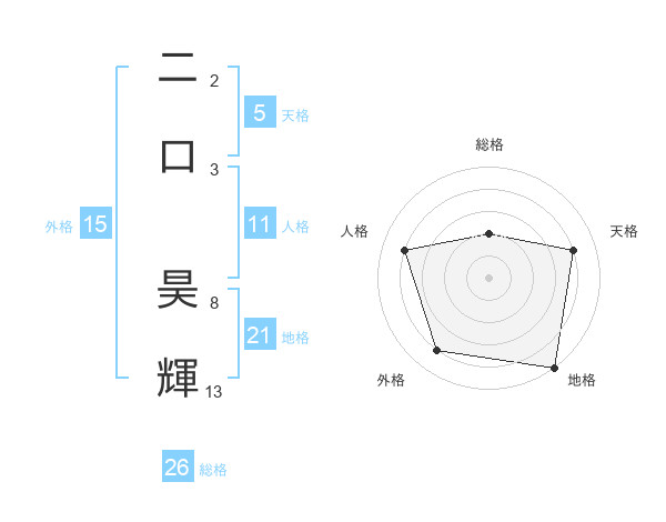 二口 昊輝さんを姓名の画数から五運を鑑定