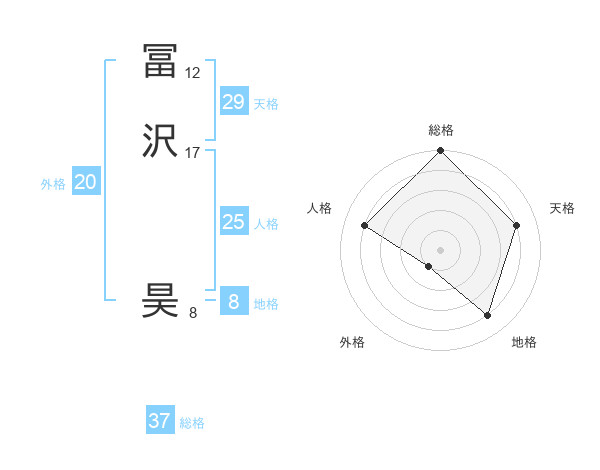 冨沢 昊さんの総格は37画の5点!