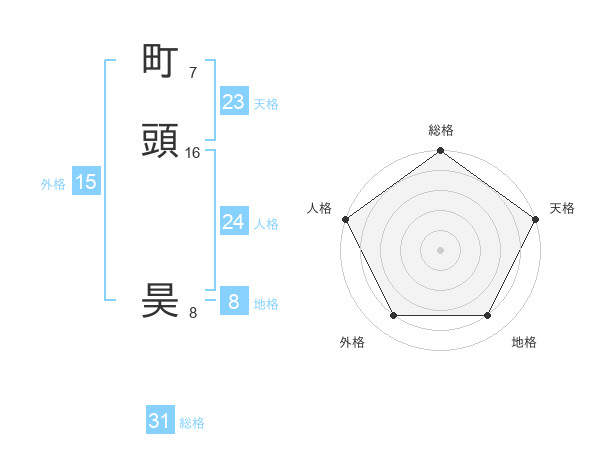 町頭 昊さんの総格は31画の5点
