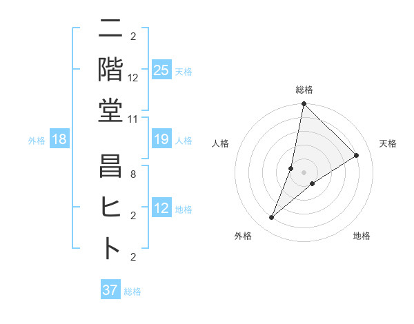 二階堂 昌ヒトさんの天格は25画の4点!
