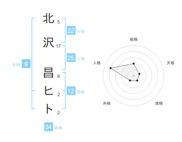 北沢 昌ヒトさんの天格は22画の1点!