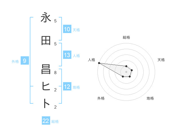 永田 昌ヒトさんを姓名の画数から五運を鑑定